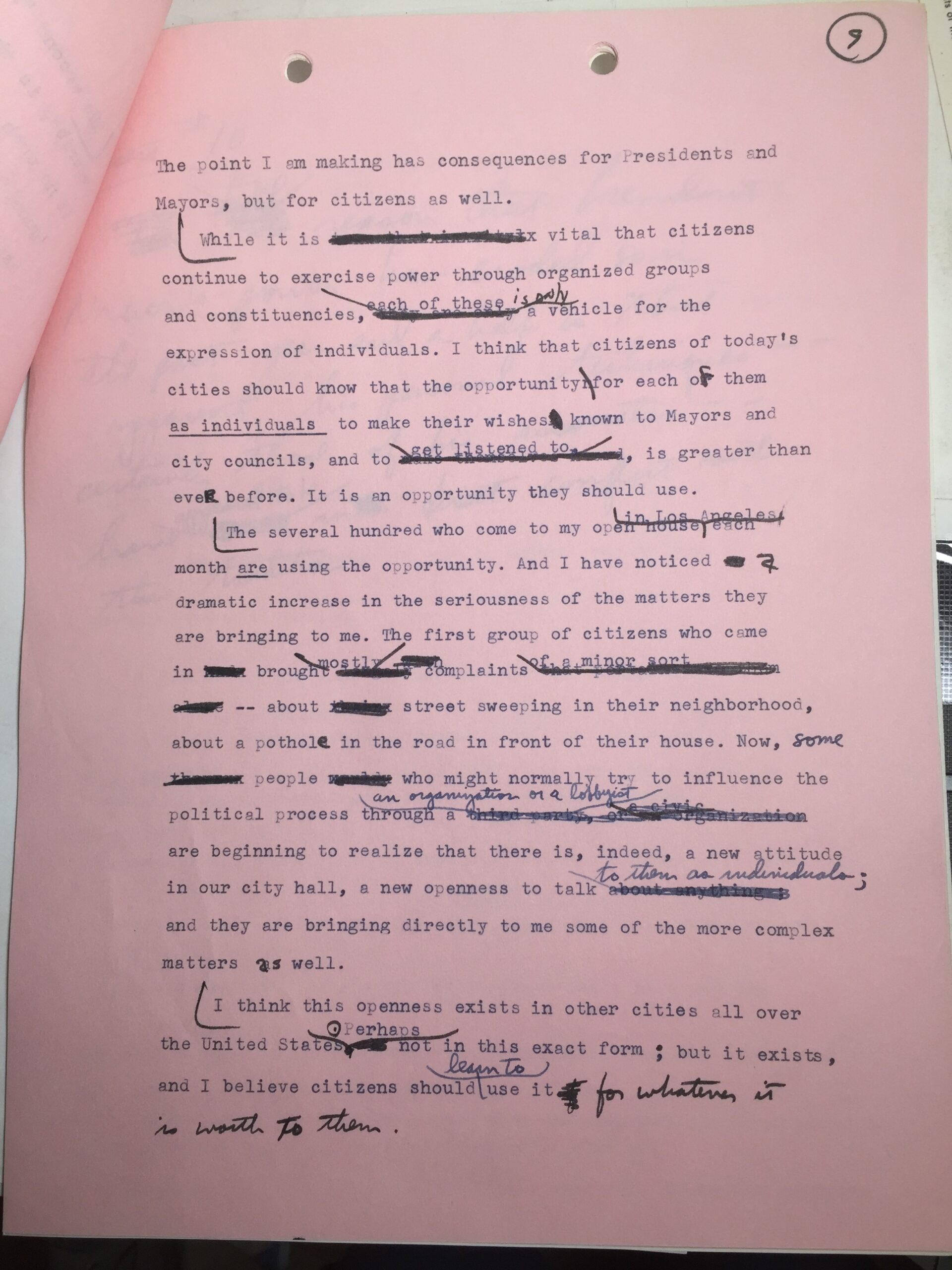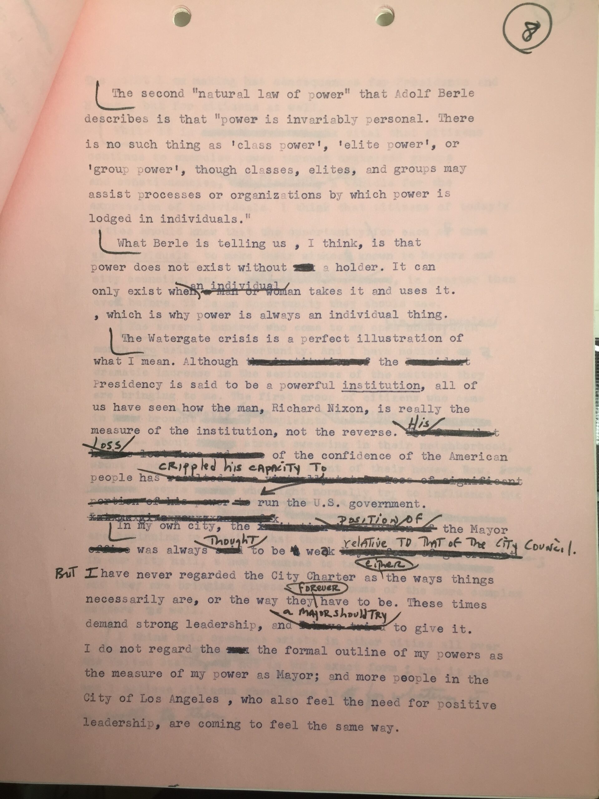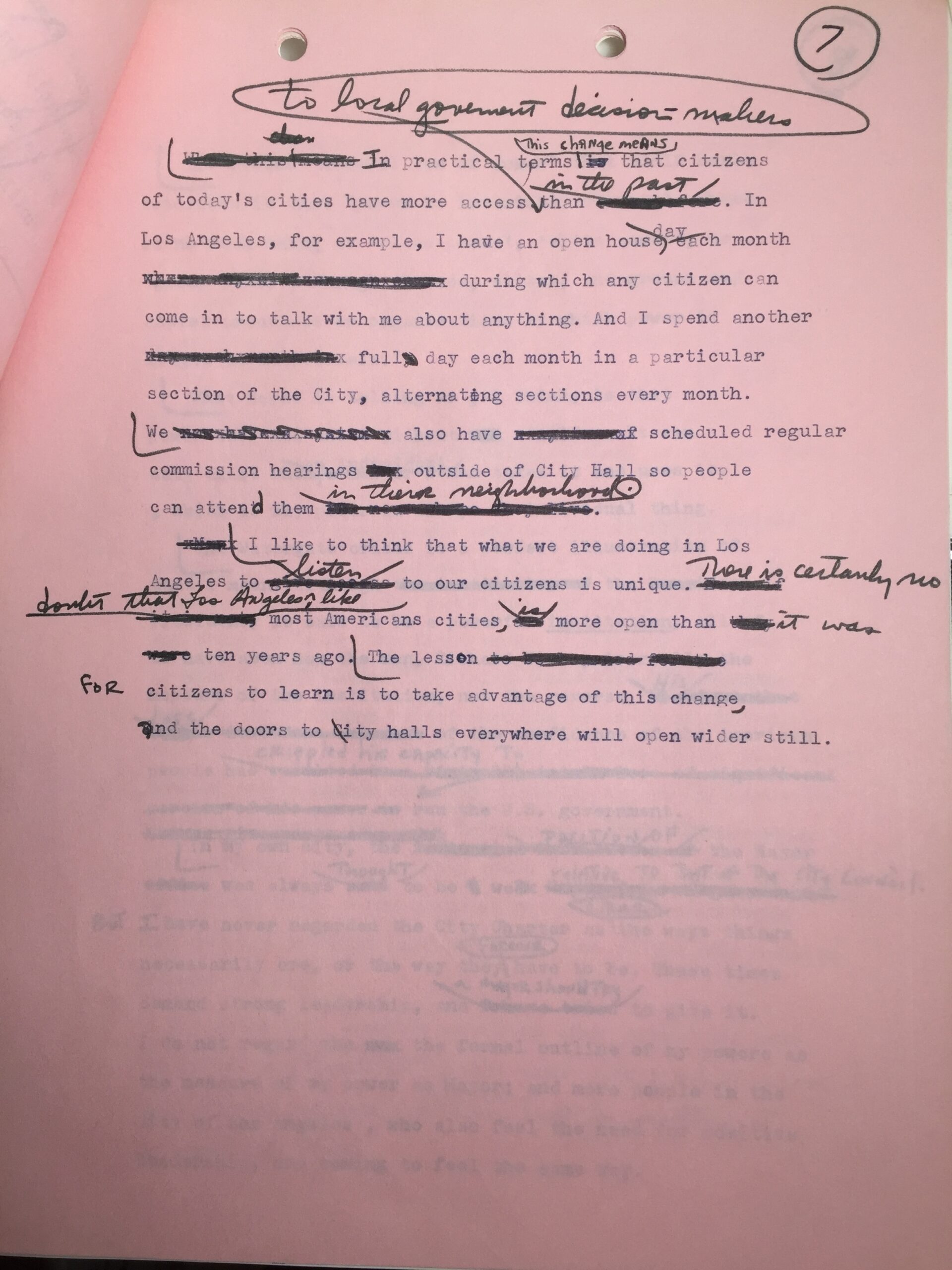 I found this. I suspect it may have been tossed into the trash and retrieved. Upon reading it, I figured out that it was written by, or for, Tom Bradley. I’ve started looking for orgs that could take this kind of stuff. I’m also selling things, but some thing like this might have a bit more historical value, and maybe shouldn’t be sold.